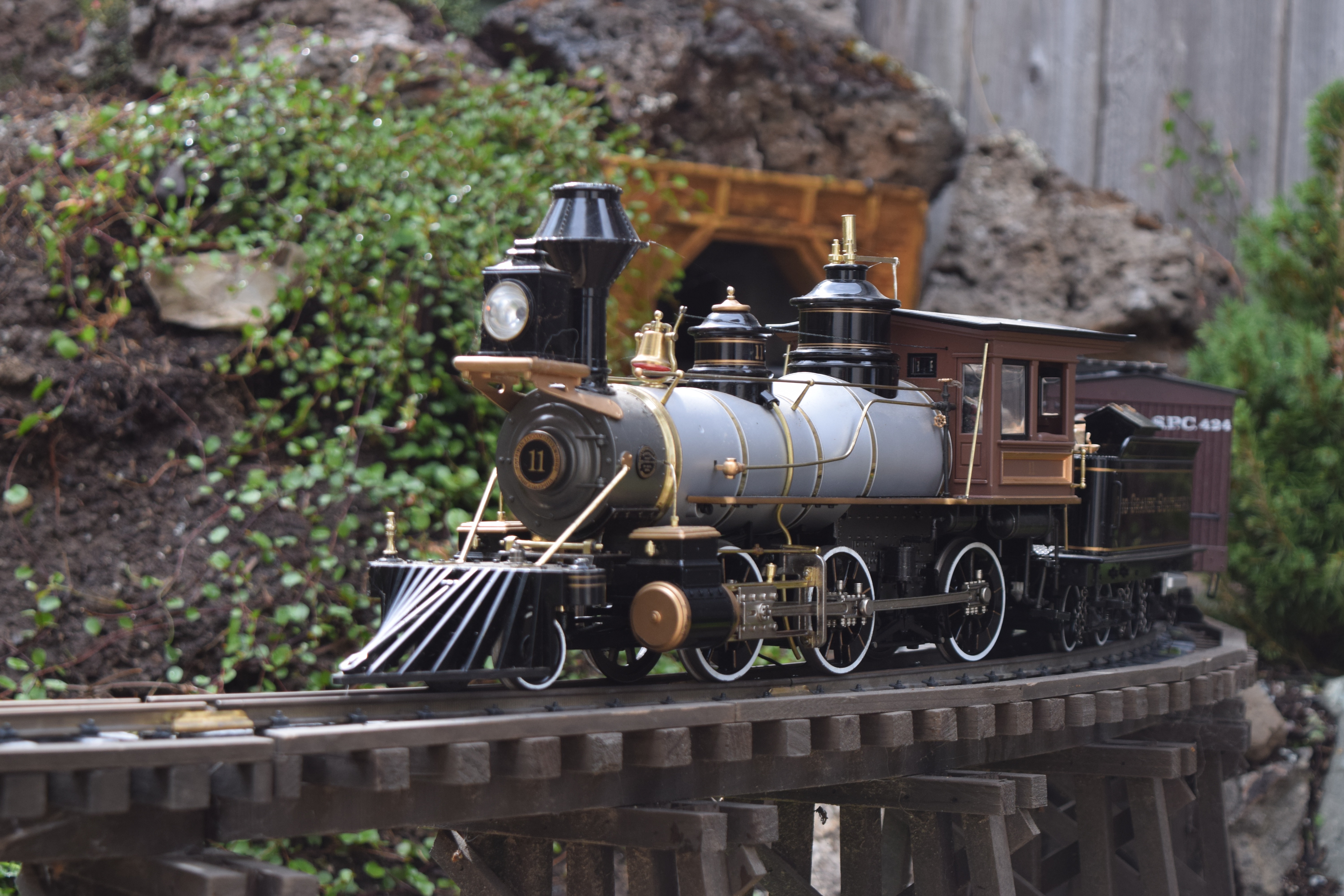 SPC #21 is a Bachmann 4-6-0 Annie that is one of the primary engines on the FCW. The #21 hauls both freight and passenger trains on the FCW and has also been on the FCW property longer than any other engine. This locomotive ran on Eric’s old garden railroad and was in storage when the Fern Creek and Western was started. Eric then discovered it in the attic and upon cleaning the wheels and the rest of the engine, we discovered it still ran but not very well under track power. We decided to convert the engine to radio control and battery operation with Tsunami Sound making it our first battery engine for heavy mainline service. This engine is a common site on the Fern Creek and Western and has proved her worth on the narrow gauge.