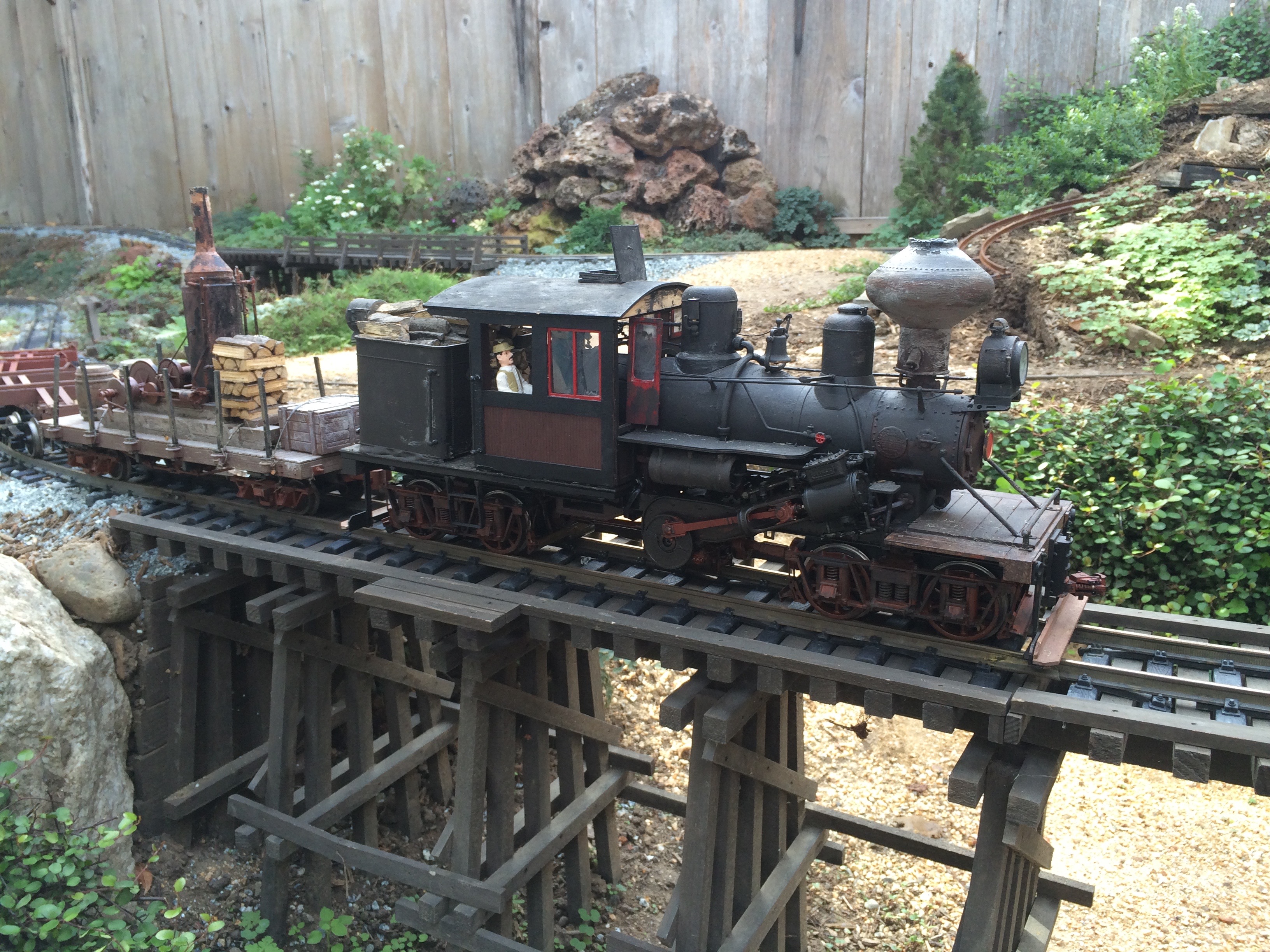 The locomotives on the roster of the Fern Creek & Western and the subsidiary lumber company are all built to replicate steam engines common to the early 1900s time period. All of the locomotives are 1:20.3 scale, or Fn3 (referring to F scale narrow gauge modeling 3ft gauge). The FC&W is a “dead rail” railroad, meaning that there is no power going to the rails like on a conventional model train. Most locomotives were once track power, but we have converted them in house to be radio controlled and battery operated. We also utilize a variety of live steam power on the railroad. Quite a few of our locomotives are candidates for projects. This list will only cover locomotives that currently operate on the railroad. For updates on locomotive projects, please visit our Facebook page.